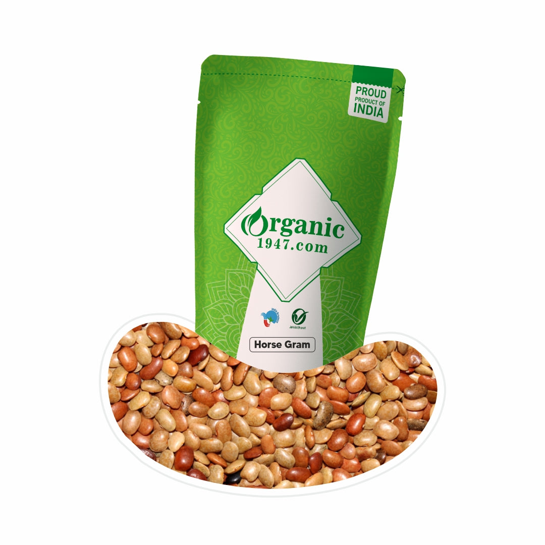 Organic1947.com- Horse Gram, the miracle pulse is the most protein rich lentil found on the planet. It is also rich in carbohydrates, minerals, fibre, iron, calcium, and phosphorous. It's a traditional elixir for ailments like diabetes, heart disease, kidney stones, asthma, obesity, cold and controls menstrual problems, organic1947.com- Horse gram are hygienically packed in a seal pouch to preserve the purity and aroma of the same. Our Horse Gram is 100% certified organic. These are unadulterated and are grown without synthetic pesticides and GMOs.